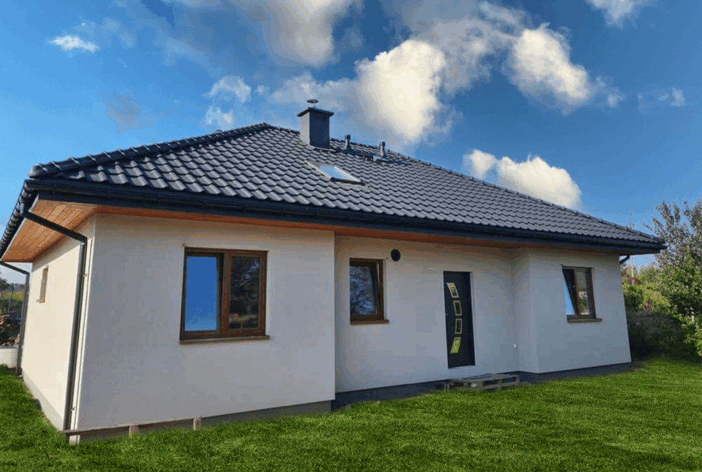 Galeria zdjęć Opis projektu Jest to energooszczędny dom budowany w technologii szkieletowej MDDOM®. To projekt domu z poddaszem użytkowym, który spełnia potrzeby