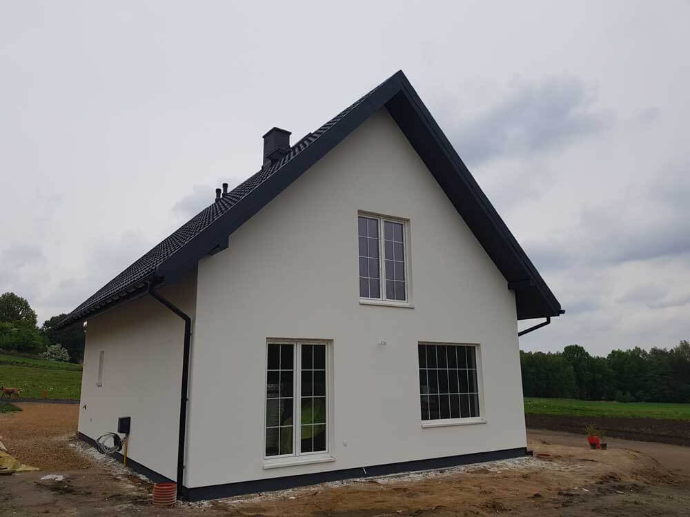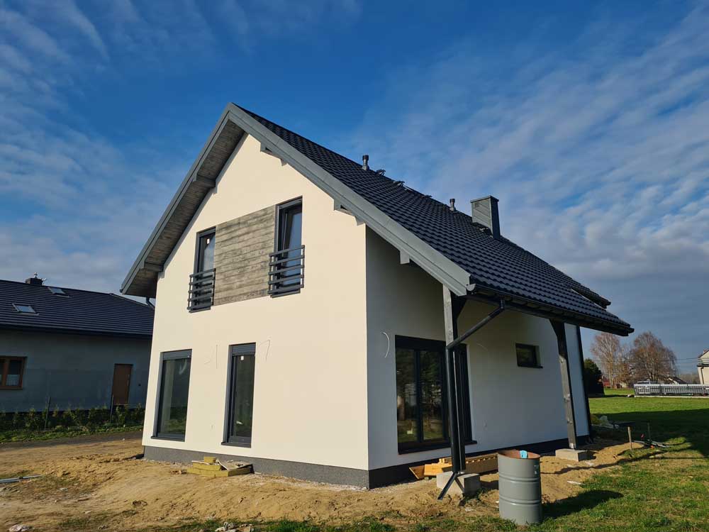 Galeria zdjęć Opis projektu Inwestycja obejmowała wybudowanie domu szkieletowego piętrowego o metrażu 111,5m2 w miejscowości Wojkowice. Projekt domu zakładał 3