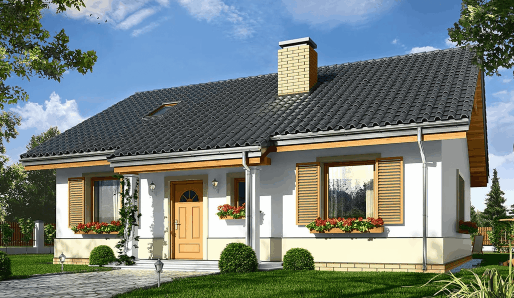 Żabka 3 to projekt domu parterowego z możliwością zaadaptowania poddasza. Strefa dzienna wyraźnie oddzielona od strefy nocnej.