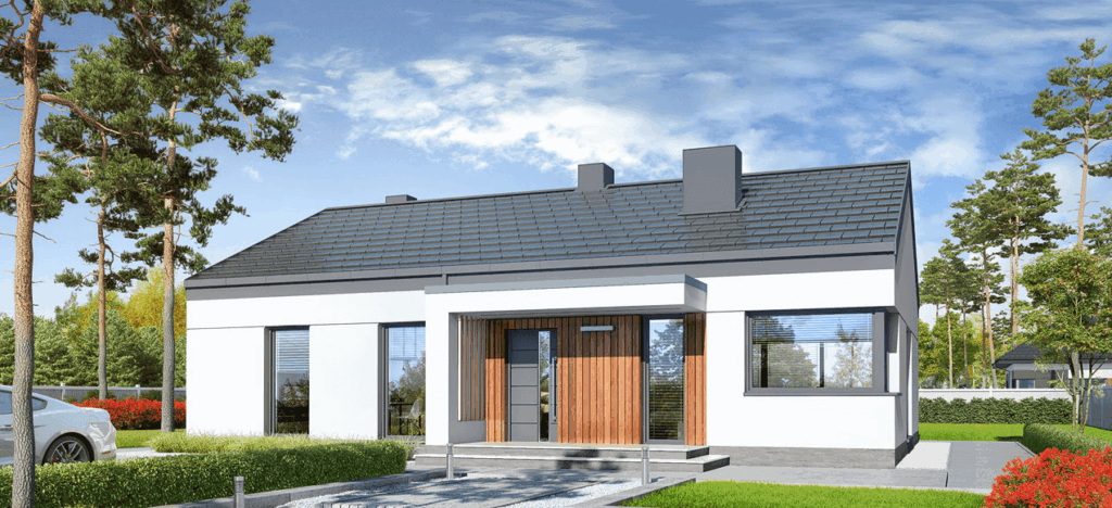 Dom w Lulo to projekt domu parterowego, który charakteryzuje się bardzo atrakcyjnym stosunkiem wielkości domu do ceny. Optymalny metraż powierzchni domu 99,58m2, dla 4 osobowej rodziny.