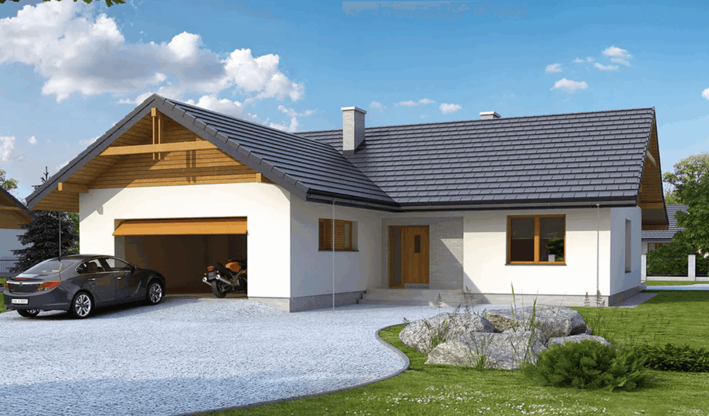Dom w Awokado to projekt domu parterowego o powierzchni 99,77 m2. Projekt domu zakłada w strefie dziennej duży salon z kuchnią i jadalnią. W kuchni zaaranżowana jest również spiżarnia dla wygody przechowywania żywności. W strefie nocnej znajdują się 3 pokoje (sypialnie) oraz duża łazienka. Główna sypialnia posiada własną łazienkę i garderobę, co pozwoli gospodarzom domu na większą prywatność.