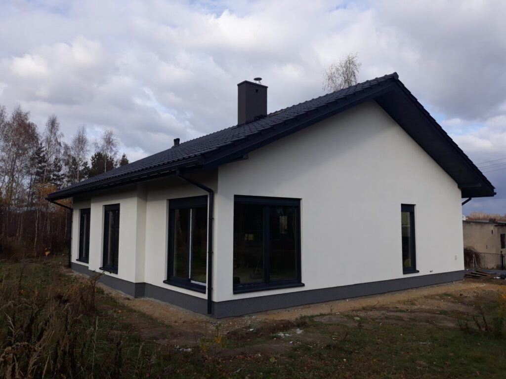 Galeria zdjęć Opis projektu Inwestycja obejmowała wybudowanie domu szkieletowego parterowego o metrażu 65m2 w miejscowości Jaworzno. Projekt domu zakładał 1